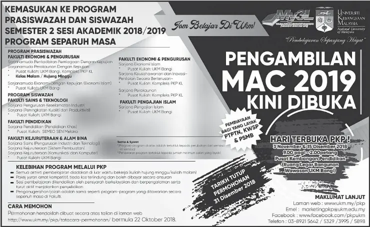 5)sesungguhnya solat yang paling berat bagi orang munafik adalah solat isyak dan solat subuh.sekiranya mereka mengetahui apa yang terkandung di dalamnya, nescaya mereka akan mendatangi keduanya sekalipun dengan merangkak. Pelajar dipilih berasaskan pencapaian cemerlang di dalam akademik dan penglibatan aktif dalam kokurikulum semasa di ipma di peringkat sijil dan diploma dengan memenuhi syarat kelayakan seperti yang ditetapkan. After you enable flash, refresh this page and the presentation should play. Pelbagai aktiviti menarik menanti anda! Pelajar yang mengikuti program/kursus jarak jauh/ separuh masa.