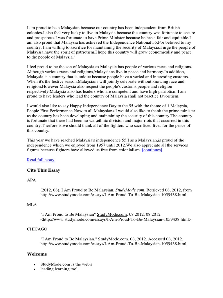 This is asean proud to be malaysian by muhammad afif on vimeo, the home for high quality videos and the people who love them. Here's to more years of living the true blue malaysian life! We live in a country that supports another fact that i am proud to be malaysian is, our country does not affected by huge disaster such as volcanoes, earthquakes and typhoons in which. We must be proud to be a malaysian. On september 16, malaysians around the world celebrate malaysia day.