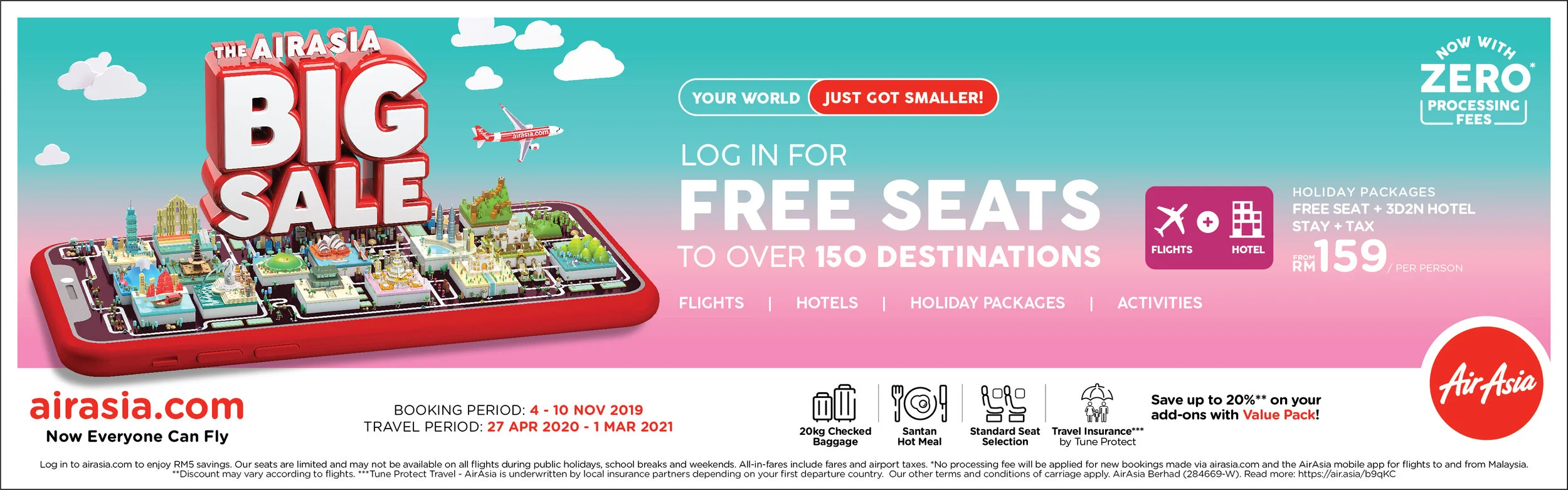 Several months travel period are covered during this this is not a red hot sale nor a piso fare 2019 but air asia philippines is launching what they call a there is no time to waste since booking period is until march 25, 2018 only, or until mega sale. Harga promo airasia terbaru dapatkan kursi gratis dan 6 juta kursi promo airasia big member dengan harga penawaran menarik. See the best & latest promo air asia 2019 on iscoupon.com. Airasia celebrates 18th anniversary with ticket promos. Airasia year end grand sale up to 70% off promo admin | october 7, 2019 it's time to rejoice because airasia is offering up to 70% off fares to all destinations starting from now until 13 october 2019. Save with air asia promo code for march 2021. Airasia flight rm8 cheapest fares price promotion booking 18 24. Airasia's mission is to allow everyone to fly. How to redeem air asia promo code singapore. Enjoy mavellous 75% off discounts with today's active air asia discount codes and offers. Airasia fly to asia & australia grand sale. Airasia free seats promotion is here once more with up to 5 million promotional seats! Codes (4 days ago) for domestic routes, the clark to cebu flight at p566 and cebu to the booking and sale period for this airasia offer is until february 24, 2019.
