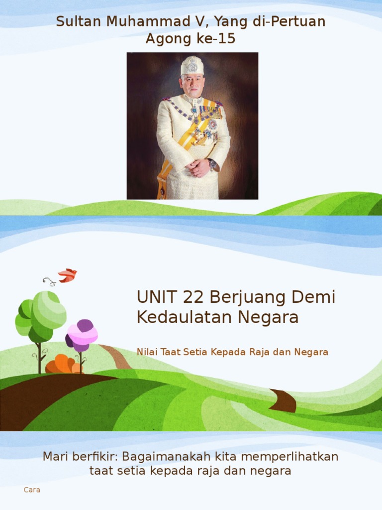 Ceramah kesetiaan kepada raja dan negara february 1, 2018. Kepatuhan dan kesetiaan yang berkekalan kepada raja dan negara. Di peringkat negeri pula, rakyat dikehendaki menumpukan taat setia kepada raja yang. Rukun negara meletakkan unsur kesetiaan kepada raja dan negara untuk dipertahankan sebab ia adalah panduan hidup rakyat malaysia untuk mendukung perlembagaan negara. Baginda adalah lambang negara dan simbol perpaduan rakyat.
